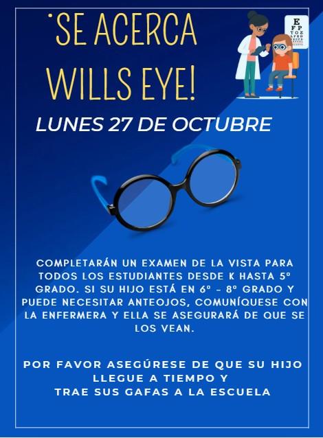 lunes 27 de octubreHospital Oftalmológico Wills – Consigue tus gafas